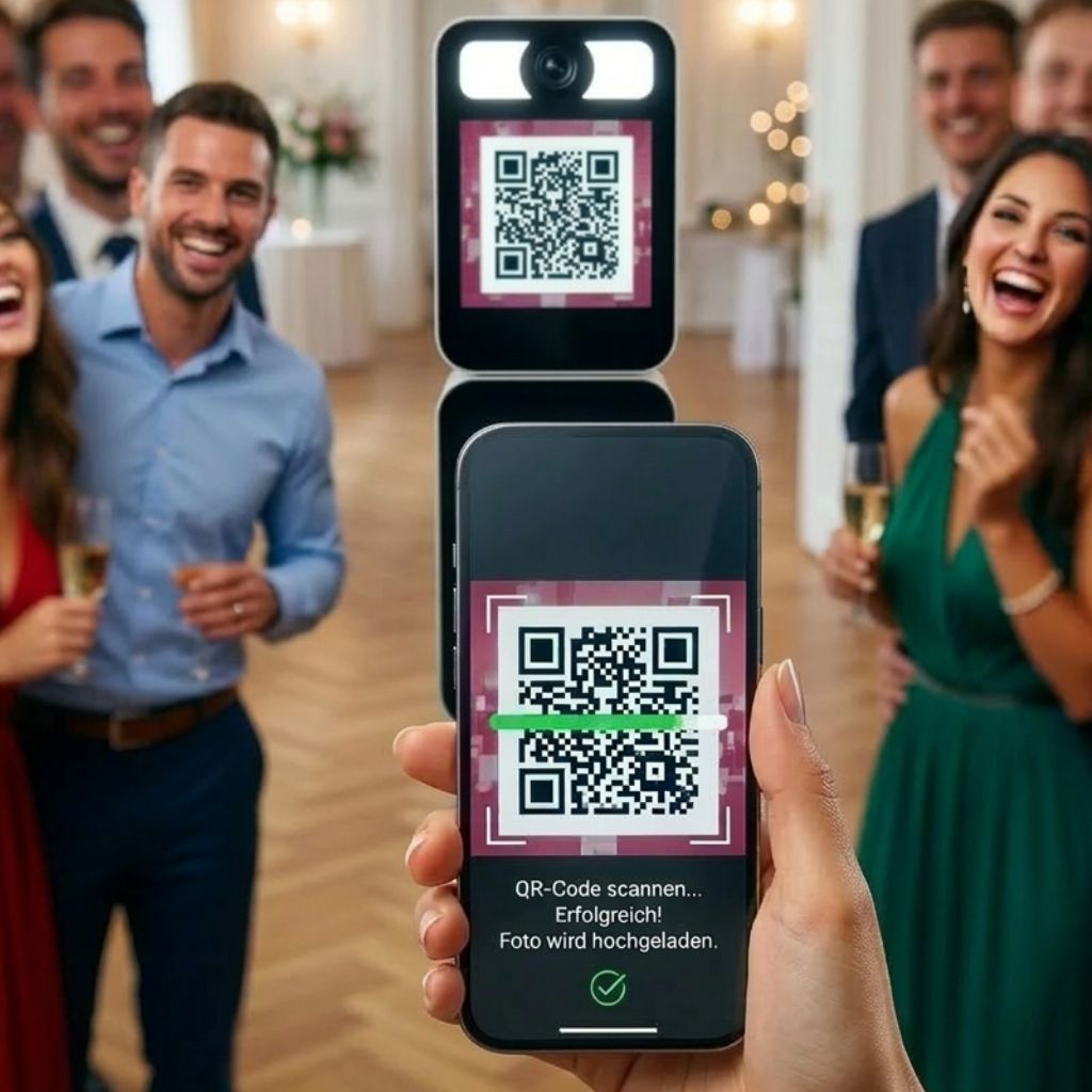 ⚡ QR-CODE Social-Media Flat: Das ultimative Feature! Eure Gäste scannen das Bild am Display und haben es sofort auf dem Handy – perfekt für Instagram & WhatsApp.