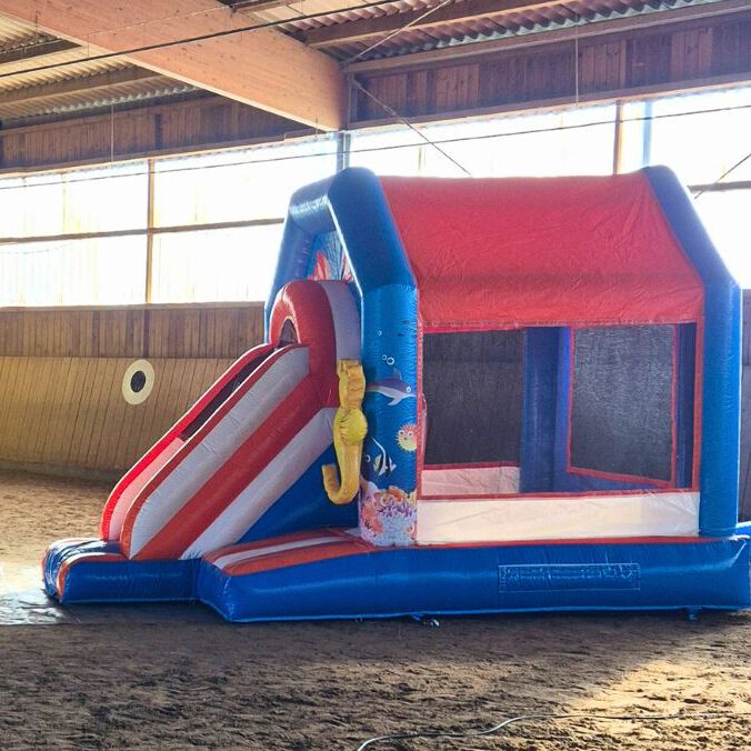 Die Hüpfburg Unterwasser ist ein ganz besonderes Profimodul für Kinder von etwa 3 bis 8 Jahre. Die Kombination aus Hüpfburg und Rutsche ist ein echter Spaßgarant und der kleine Einstieg ins innere der Hüpfburg ist für jedes Kind ein Erlebnis.
