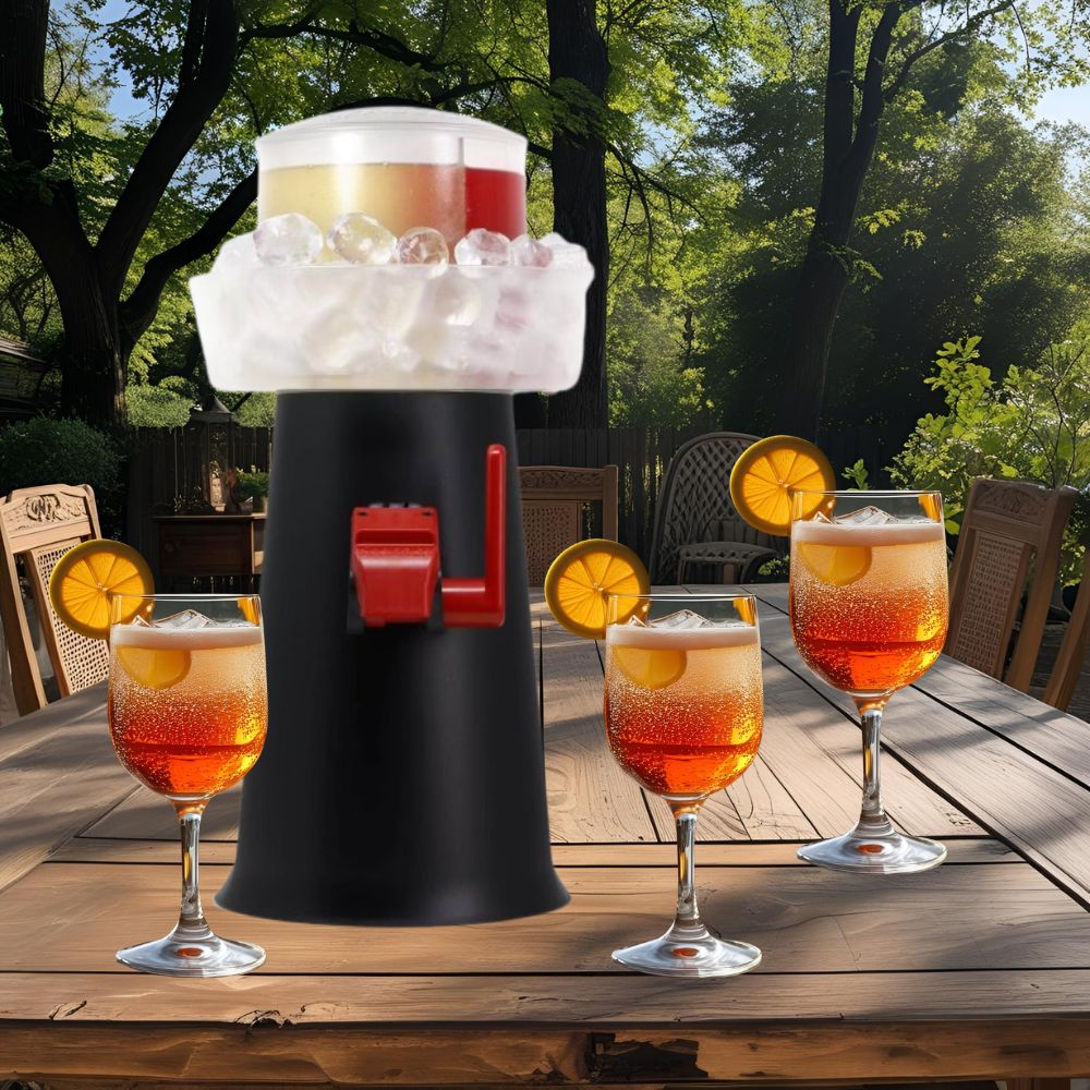 Einfach Prosecco, Mineralwasser und einen Bitterstoff nach Wahl (Aperol, Campari, Select) einfüllen und perfekt gemischt zapfen.